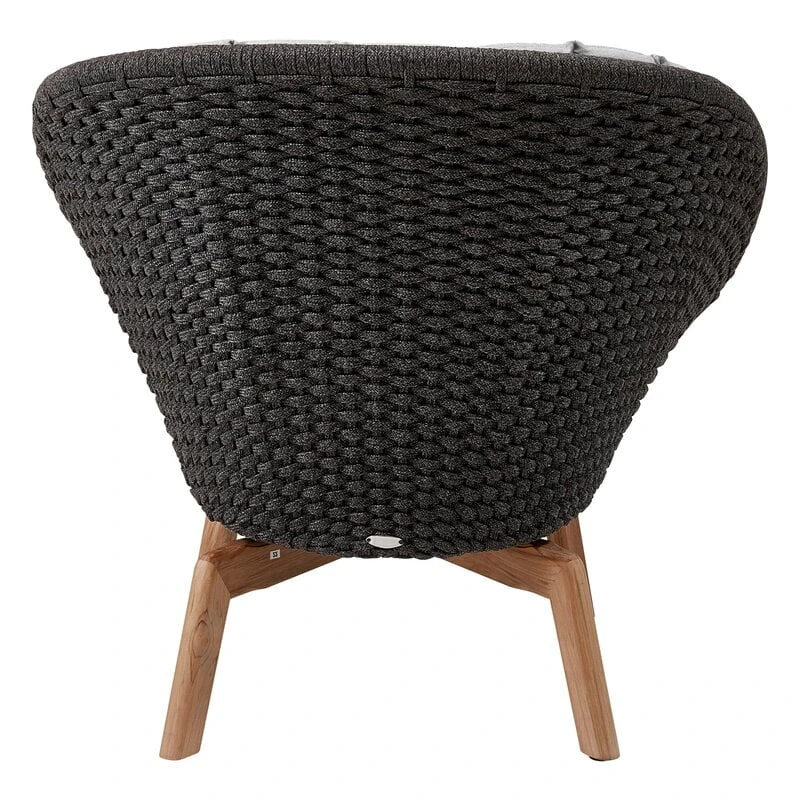 Cane-linen Peacock-nojatuoli hurmaa ajattomalla muotoilullaan parvekkeella, puutarhassa ja terassilla. Foersom & Hiort-Lorenzenin suunnittelema Peacock-nojatuoli koostuu tiikkipuisista jaloista ja niiden päällä lepäävästä joustavan pehmeästä polypropeeni-istuimesta. Kuppimainen istuin on punottu Cane-linen omasta Soft Rope -materiaalista, joka säilyttää värinsä ja muotonsa vuodesta toiseen vaihtelevissakin sääolosuhteissa. Jalkarakenne saa hiljalleen ylleen tiikkipuulle ominaisen hopeanharmaan patinan.