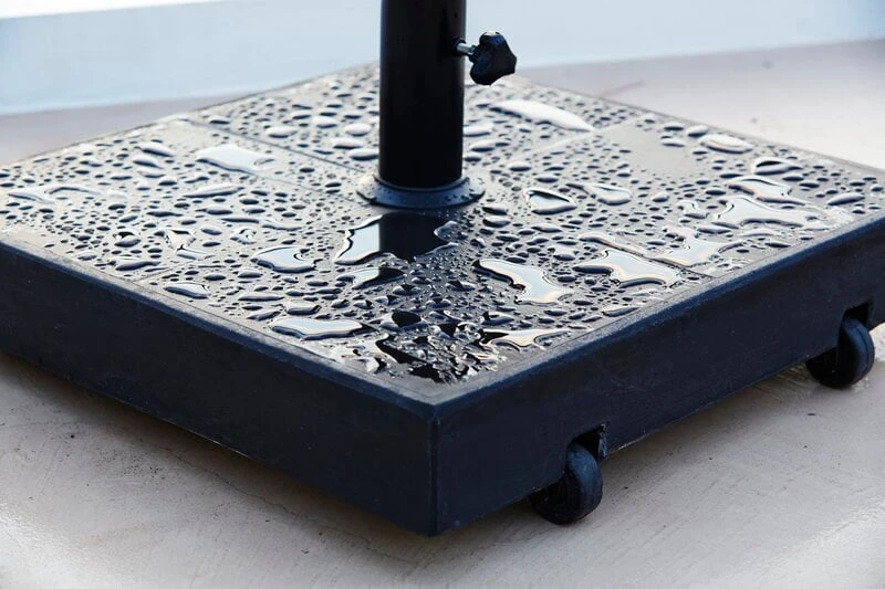 Cane-linen aurinkovarjon jalka on suunniteltu erityisesti Sunshade-sarjan aurinkovarjoille, ja se sopii yhteen muidenkin aurinkovarjojen kanssa, joiden tangon halkaisija on korkeintaan 54 mm. Betonilaatoista valmistetulla jalustalla on painoa peräti 47 kiloa, joten se pitää aurinkovarjon tukevasti paikoillaan tuulisellakin säällä. Vankasta rakenteesta huolimatta jalustaa on helppo liikutella pohjaan integroitujen pyörien ansiosta.