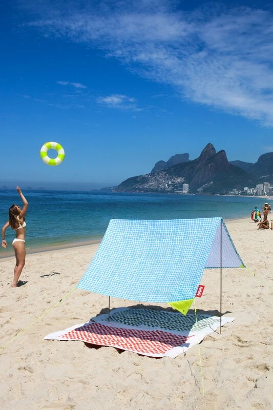 Fatboyn Miasun-rantateltta on täydellinen koko perheen kumppani rannalle, puistoon ja piknikeille. Puuvillakanvaksesta ja alumiinituista koostuva taiteltava aurinkosuoja vie hämmästyttävän vähän tilaa ja on verrattoman kevyt – teltta painaa vain reilun kilon! Miasun-aurinkosuoja on mahdollista kasata kolmella eri tavalla; sen kasaaminen on helppoa ja nopeaa riippumatta siitä, millä tavalla haluat sen pystyttää. Ja mikä parasta: avoimen rakenteensa ansiosta Miasun suojaa sinua paahtavan auringon kuumuudelta ja haitallisilta UV-säteiltä, mutta antaa silti lempeän tuulenvireen puhaltaa ihollasi! Miasun-rantateltan alle mahtuu suojaan jopa kaksi aikuista ja kaksi lasta.