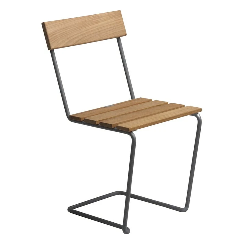 Grythyttan Stålmöblerin tuoli 1 on tuonut ruotsalaisen muotoilun laatua pihoille, parvekkeille ja terasseille aina 1930-luvulta alkaen – tuoli on itse asiassa yrityksen ensimmäisen menestystuotteen, nojatuoli A2:n pikkusisar. Artur Lindqvistin suunnitteleman pinottavan puutarhatuolin erityispiirre on sen taivutetusta teräsputkesta valmistettu siro jalkarakenne, jonka ansiosta tuolilla on miellyttävä, aavistuksen keinuva istuintuntuma. Vastaava jalkarakenne on tuttu monesta muustakin Grythyttan Stålmöblerin tuolista. Ajan myötä galvanoidut teräsosat saavat ylleen himmeän mattapinnan, ja käsittelemätön tiikkipuu patinoituu puolestaan kauniin hopeanharmaaksi.