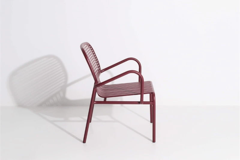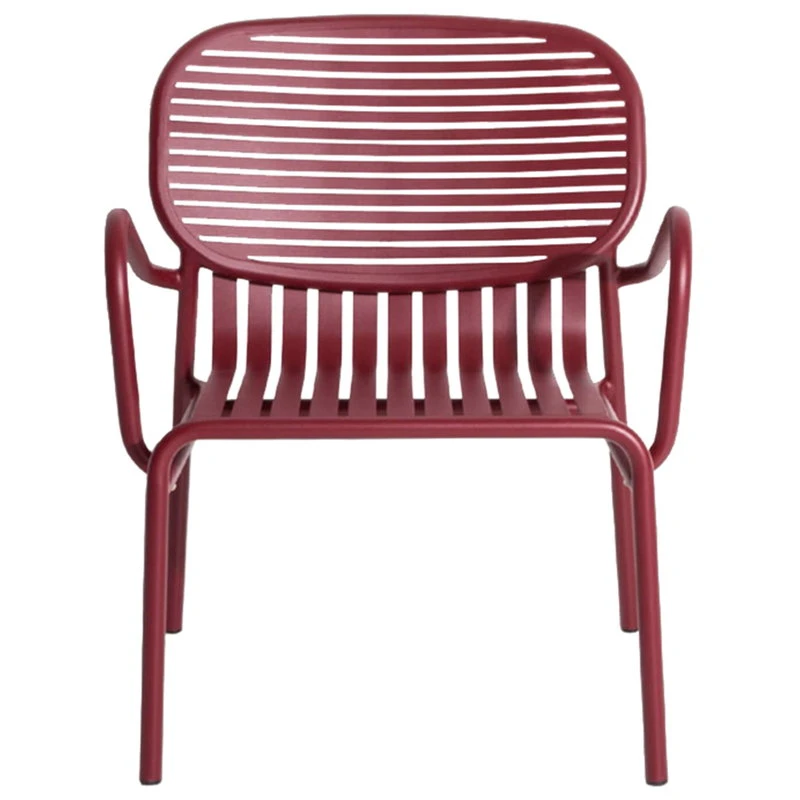 Week-end-nojatuoli on osa ranskalaisen Petite Frituren alumiinisten ulkokalusteiden kokoelmaa. Viehättävien Weekend-tuolien tunnistettavimpiin piirteisiin kuuluvat niiden selkänojien ovaalinmuotoiset yksityiskohdat sekä vaaka- ja pystysuorien linjojen vuorottelu. Kaikki kokoelman tuolit ovat pinottavia.