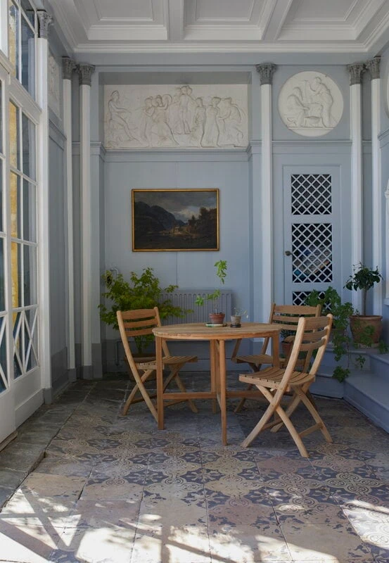 Selandia-pöytä kuuluu Skagerakin viehättävään ulkokalustesarjaan, jossa pohjoismaiset muotoiluperinteet kohtaavat ranskalaisen eleganssin. Selandia-kokoelman ulkokalusteet on valmistettu massiivitiikistä, joka saa vanhetessaan hopeanharmaan patinan. Kaikki Selandia-kalusteet ovat rakenteeltaan taitettavia, joten ne mahtuvat helposti talvisäilöön pieneenkin tilaan. Voit myös taittaa pöydästä vain toisen puolen, jolloin se muuntuu kompaktiksi, puoliympyrän muotoiseksi pöydäksi.