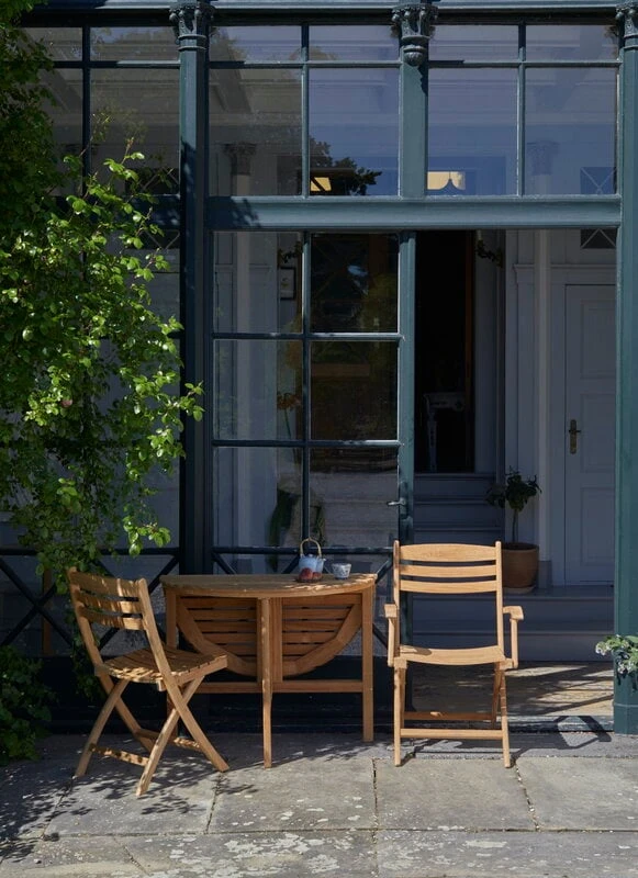 Käsinojallinen Selandia-tuoli kuuluu Skagerakin viehättävään ulkokalustesarjaan, jossa pohjoismaiset muotoiluperinteet kohtaavat ranskalaisen eleganssin. Selandia-kokoelman ulkokalusteet on valmistettu massiivitiikistä, joka saa vanhetessaan hopeanharmaan patinan. Kaikki Selandia-kalusteet ovat rakenteeltaan taitettavia, joten ne mahtuvat helposti talvisäilöön pieneenkin tilaan.