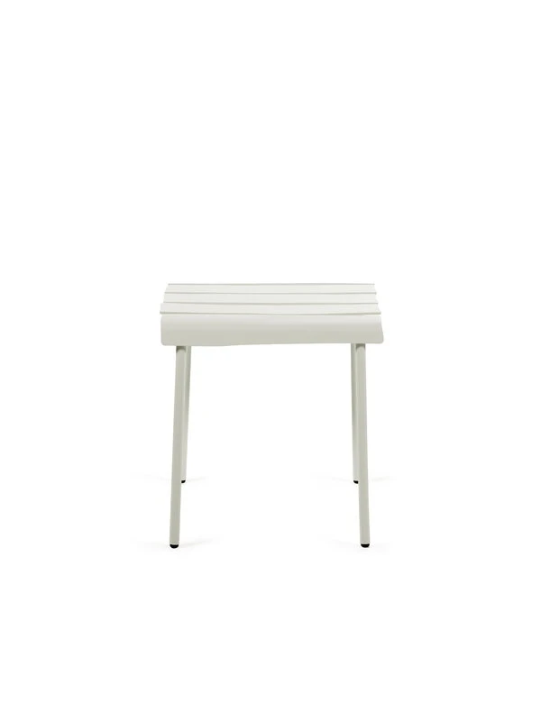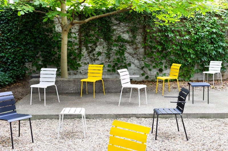 valerie objectsin Aligned-jakkaran näennäisen yksinkertainen ilme yllättää: epäsymmetriset, alumiinista valmistetut säleet antavat klassisen vähäeleiselle istuimelle täysin uudenlaisen persoonan. Tunnetun hollantilaissuunnittelija Maarten Baasin kekseliäs ja leikkisä kädenjälki on vahvasti esillä jokaisessa yksityiskohdassa – Aligned-jakkara on luotu täsmällisesti Baasin lyijykynäpiirroksen pohjalta. Kaunis ja kestävä ulkokäyttöön soveltuva jakkara sopii niin puutarhapöydän ääreen kuin sieväksi sivupöydäksi aurinkotuolin viereen ja sen hurmaavan persoonallinen ilme ihastuttaa vuodesta toiseen.