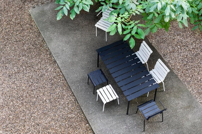 valerie objectsin Aligned-jakkaran näennäisen yksinkertainen ilme yllättää: epäsymmetriset, alumiinista valmistetut säleet antavat klassisen vähäeleiselle istuimelle täysin uudenlaisen persoonan. Tunnetun hollantilaissuunnittelija Maarten Baasin kekseliäs ja leikkisä kädenjälki on vahvasti esillä jokaisessa yksityiskohdassa – Aligned-jakkara on luotu täsmällisesti Baasin lyijykynäpiirroksen pohjalta. Kaunis ja kestävä ulkokäyttöön soveltuva jakkara sopii niin puutarhapöydän ääreen kuin sieväksi sivupöydäksi aurinkotuolin viereen ja sen hurmaavan persoonallinen ilme ihastuttaa vuodesta toiseen.